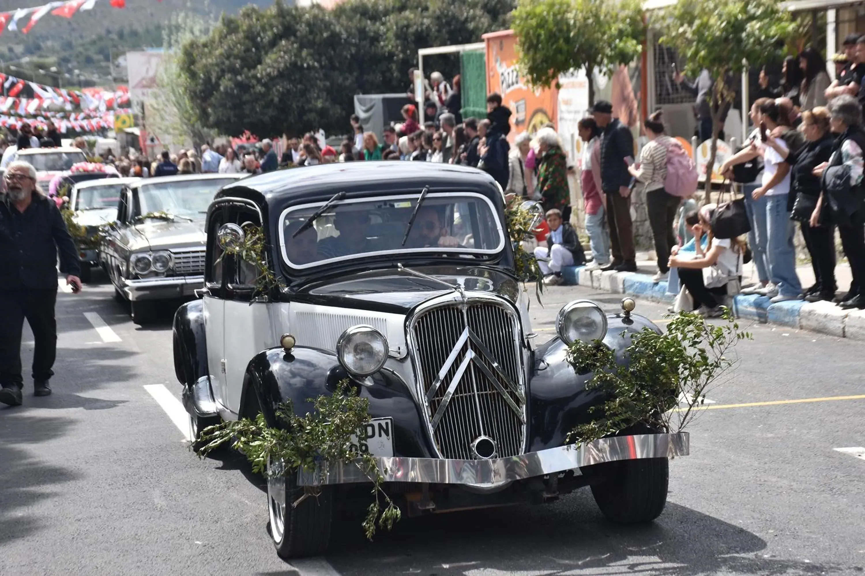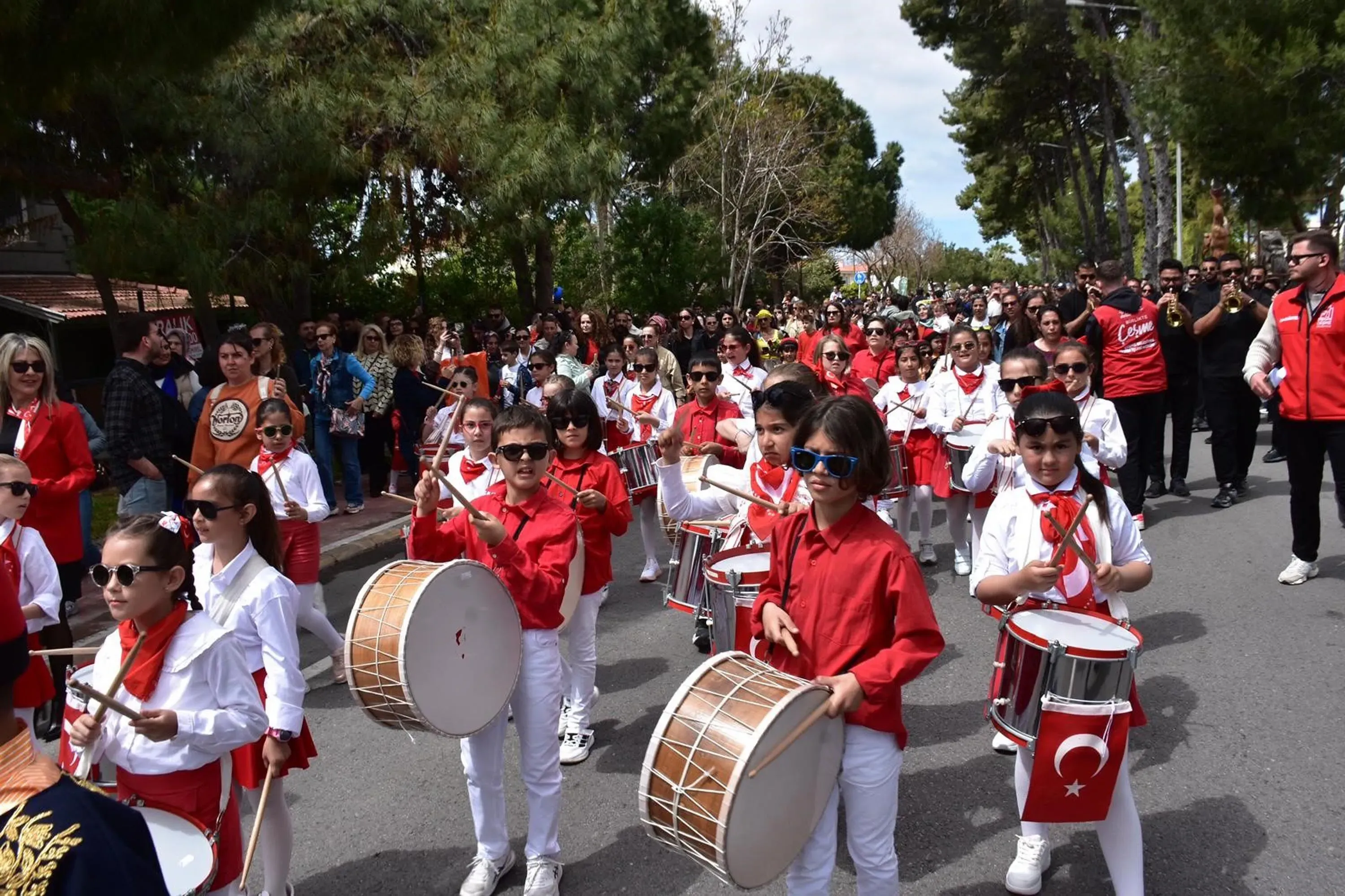 Bando eşliğinde gerçekleştirilen kortej, vatandaşların yoğun ilgisiyle takip edilirken, korteje katılan Çeşme Belediye Başkanı Lal Denizli de izleyicileri selamladı.
