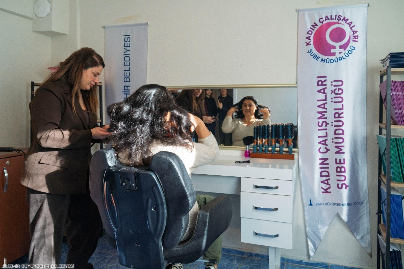 Ücretsiz saç kesimi ve fön hizmeti alan kadınlara aynı zamanda kadın sağlığı, kadın hakları, yasal haklar ve toplumsal cinsiyet eşitliği konularında bilgilendirme yapıldı.