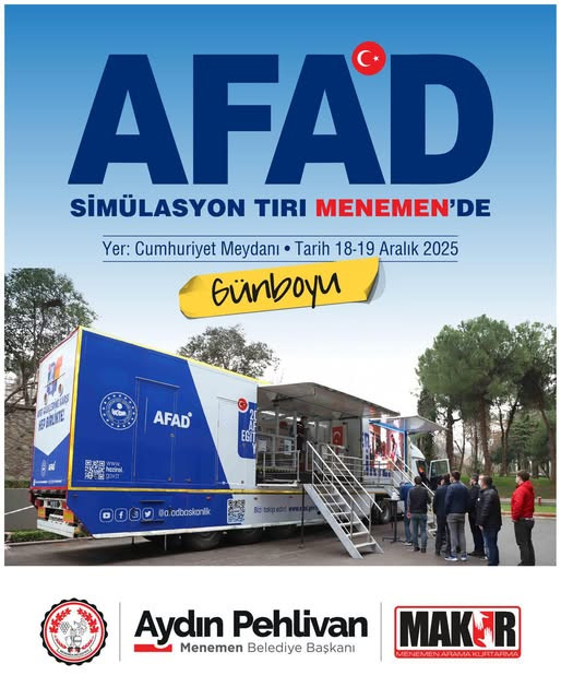 Pehlivan, Cumhuriyet Meydanı’nda 18–19 Aralık tarihlerinde gün boyu hizmet verecek olan AFAD Simülasyon Tırı ile vatandaşları afet bilinciyle buluşturacaklarını duyurdu.