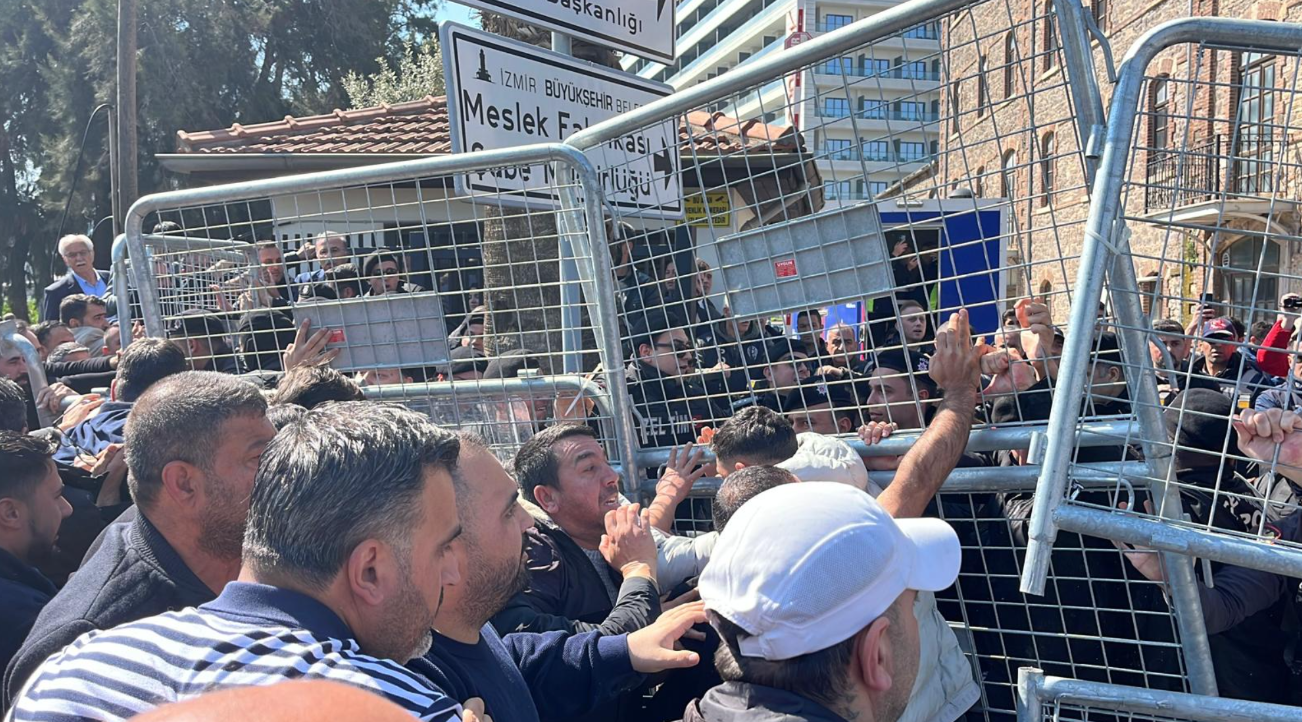 İzmir’de Meslek Fabrikası binası önünde, Vakıflar Genel Müdürlüğünün el koyma girişimine tepki gösteren CHP’liler ile güvenlik güçleri arasında gerginlik yaşandı.