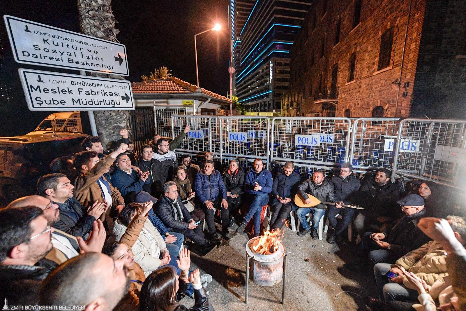İzmir Büyükşehir Belediyesine ait Meslek Fabrikası’na yönelik el koyma girişimine karşı başlatılan nöbet, perşembe gecesi de devam etti. İzmir Büyükşehir Belediye Başkanı Dr. Cemil Tugay öncülüğünde bir araya gelen yurttaşlar, gece boyunca alanda kalarak dayanışma gösterdi. Nöbete, siyasi isimler ve sivil toplum temsilcileri de katıldı.