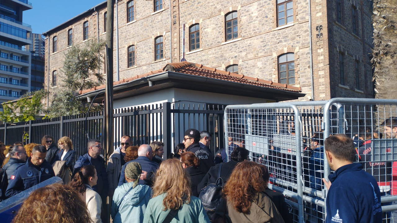 İzmir Büyükşehir Belediyesine ait bazı taşınmazların Vakıflar Genel Müdürlüğüne devredilmesi sürecine ilişkin gelişmeler kapsamında, Meslek Fabrikası binasında tahliye sürecine yönelik güvenlik önlemleri alındı.