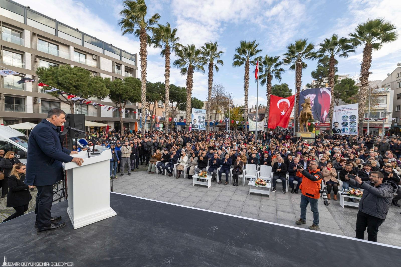 Şov ve gösteriş için çalışmadıklarının altını çizen Başkan Tugay, vatandaşların talep ve isteklerinin kendileri için çok değerli olduğunu söyledi. Tugay, “Mesai arkadaşlarıma, ‘İzmir bize emanet arkadaşlar, hepimize emanet’ diyorum. Biz burada kamu görevi yerine getiriyoruz. Bu görev askerlik gibidir; bir namus meselesidir. Halkımıza karşı başımızı asla öne eğmeyecek şekilde, hata yapmadan çalışmamız lazım. İnsanız, eksiğimiz olabilir; bazen her türlü imkânımız olmayabilir ama ben İzmirlinin yüreğini biliyorum. İzmirlinin yüreği ve gözleri şuna bakar: ‘Bu insanlar bizi seviyor mu? Bize saygısı var mı? Bizim onların gözünde bir değerimiz var mı?’ Şunu da sorarlar: ‘Bu insanlar vatanını, Atatürk’ü seviyor mu?’ Ne ben ne de arkadaşlarım bu şehri asla mahcup etmeyeceğiz. Emin olun ve bize inanmaya devam edin. Çalışmaya devam ediyoruz, edeceğiz” diye konuştu.