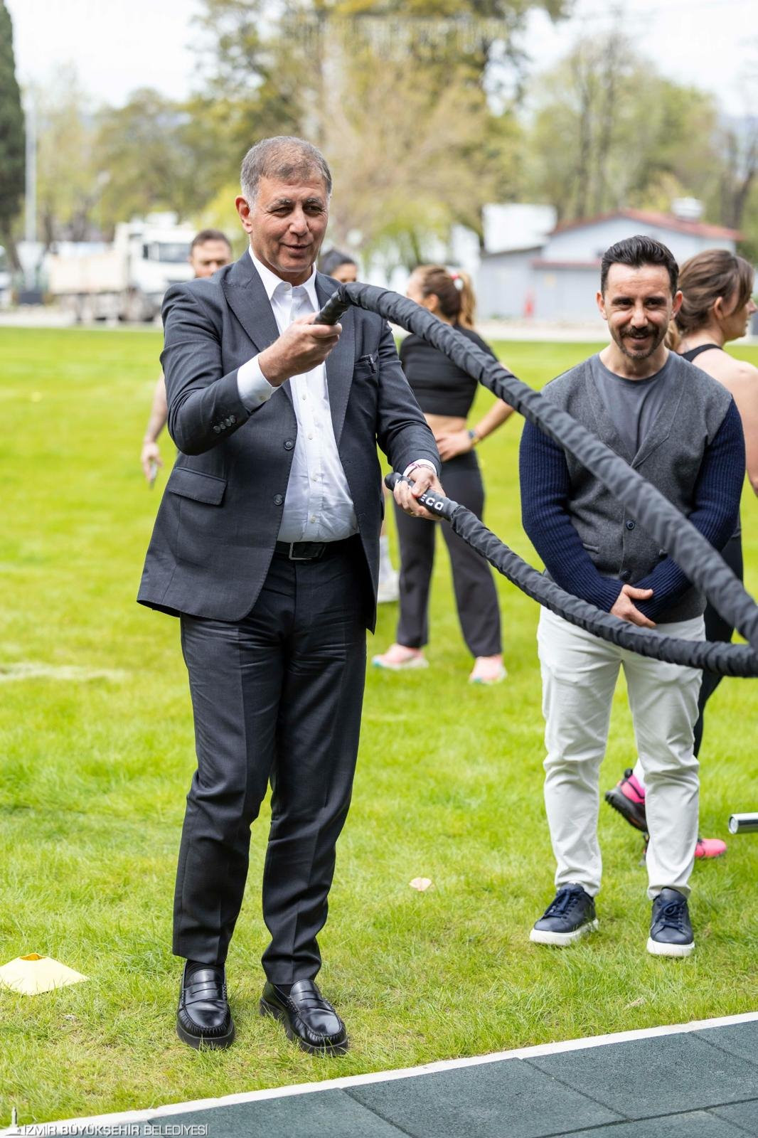 Açılışı yapılan spor istasyonunu ziyaret eden İzmir Büyükşehir Belediye Başkanı Dr. Cemil Tugay’a, Genel Sekreter Yardımcıları Prof. Dr. Pınar Okyay ve Halit Çelik ile Gençlik ve Spor Hizmetleri Dairesi Başkanı Berkhan Alptekin eşlik etti. İstasyonda yürüyüş, koşu, basketbol, yoga, futbol ve tenis gibi branşlara yönelik ekipmanlar yer alırken, kullanıcıların temel kuvvet egzersizlerini gerçekleştirebileceği alanlar oluşturuldu. Başkan Tugay, ekipmanları deneyerek gençlerle sohbet etti.