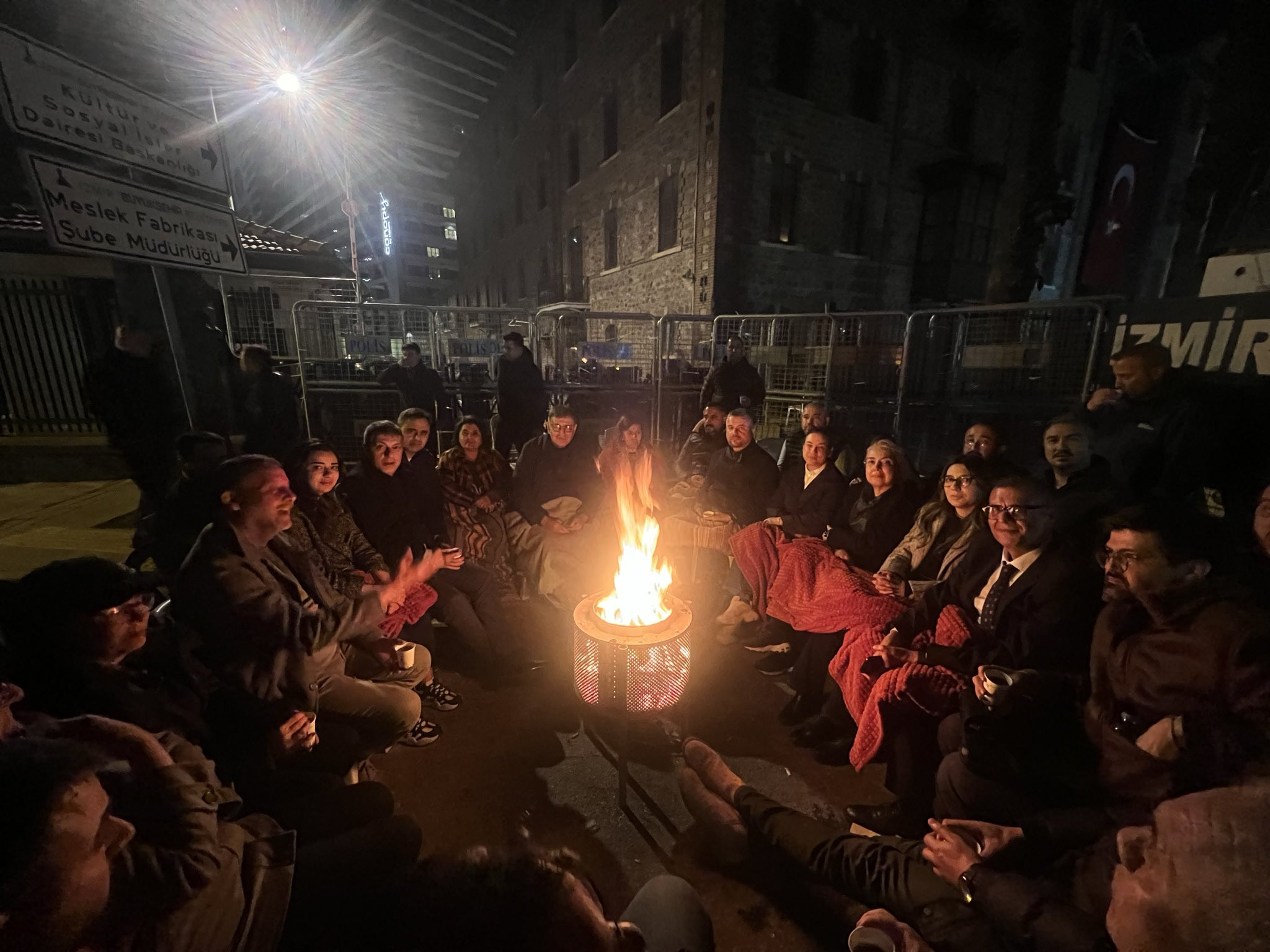 Başkan Tugay, gece saatlerinde yaptığı bir diğer paylaşımda ise Meslek Fabrikası girişinde oturduklarını belirterek, “Belki bir avuç insanız, belki çok kalabalığız. Kötü ve haksıza karşı belki çok zayıf kalıyoruz, belki tahmin etmediğimiz kadar güçlüyüz” ifadelerini kullandı.