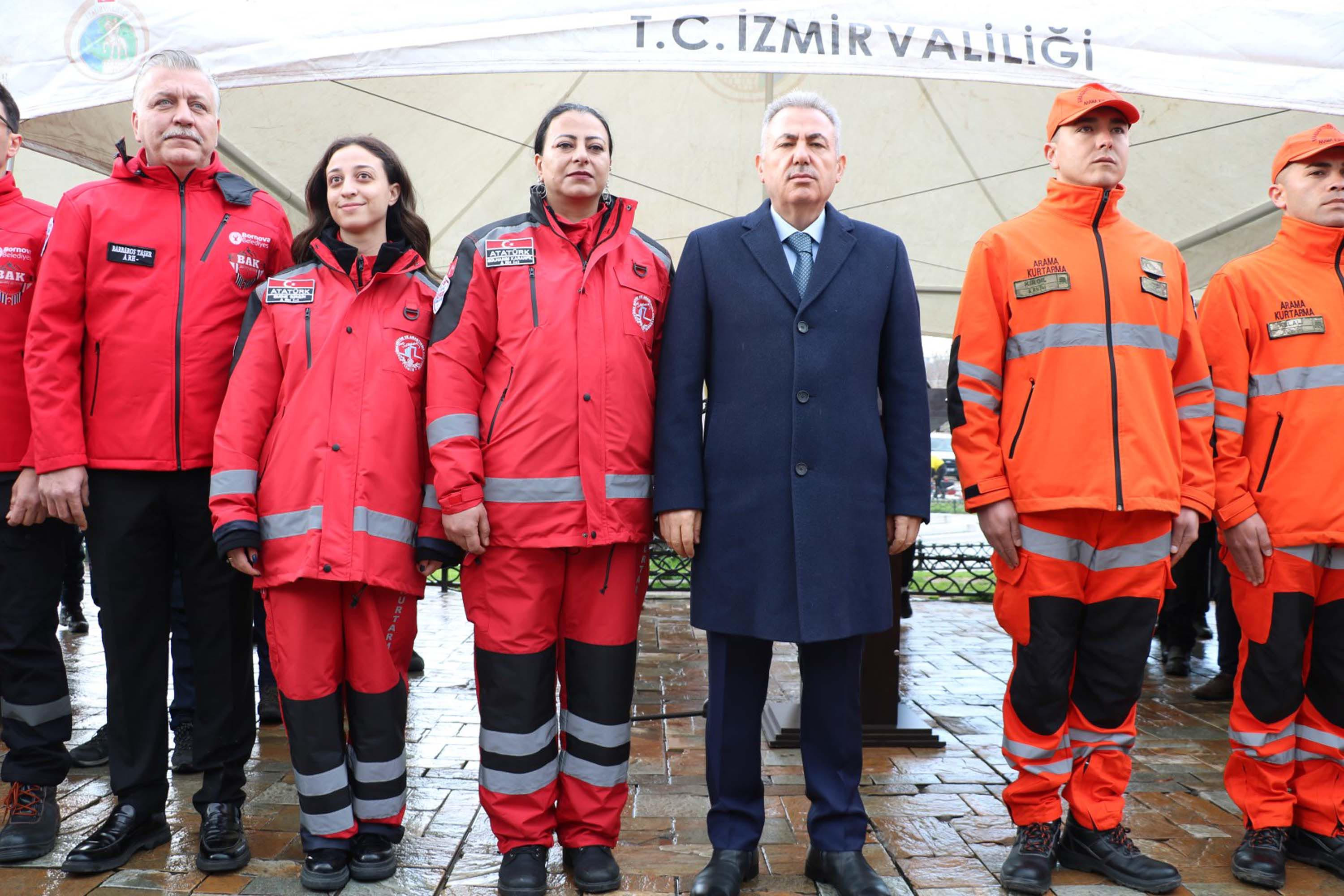 “Asrın felaketi” olarak nitelendirilen depremlerde hayatını kaybedenler için Konak Meydanı’nda düzenlenen anma programına, Vali Elban’ın yanı sıra AK Parti İzmir Milletvekili Ceyda Bölünmez Çankırı, İzmir Emniyet Müdürü Celal Sel, Ege Ordusu ve Garnizon Komutanı Orgeneral İrfan Özsert, İzmir İl Jandarma Komutanı Tümgeneral Metin Düz, Sahil Güvenlik Ege Deniz Bölge Komutanı Tuğamiral Tayfun Paşaoğlu, İzmir Afet ve Acil Durum (AFAD) İl Müdürü Nazif Ekinci ile İzmir İl Milli Eğitim Müdürü Ömer Yahşi katıldı.